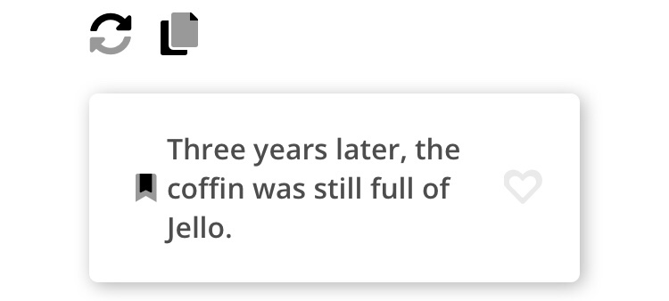 Lynn refused to clean the coffin out as a matter of principle. If her aunt had asked nicely, Lynn would’ve done it right away, but she couldn’t abide the accusations and demands. Lynn’s father—shocked by his daughter’s behavior and sympathetic to his sister’s plight—drove Lynn to the funeral home every Saturday. This would continue as long as the Jello remained, he told her again and again and again.