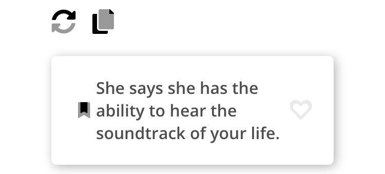 She says she has the ability to hear the soundtrack of your life. I say she’s full of shit.