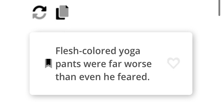 Flesh-colored yoga pants were far worse than even he feared. He stood in front of the mirror, turning and twisting, and he hoped he could eat up the clock in here.